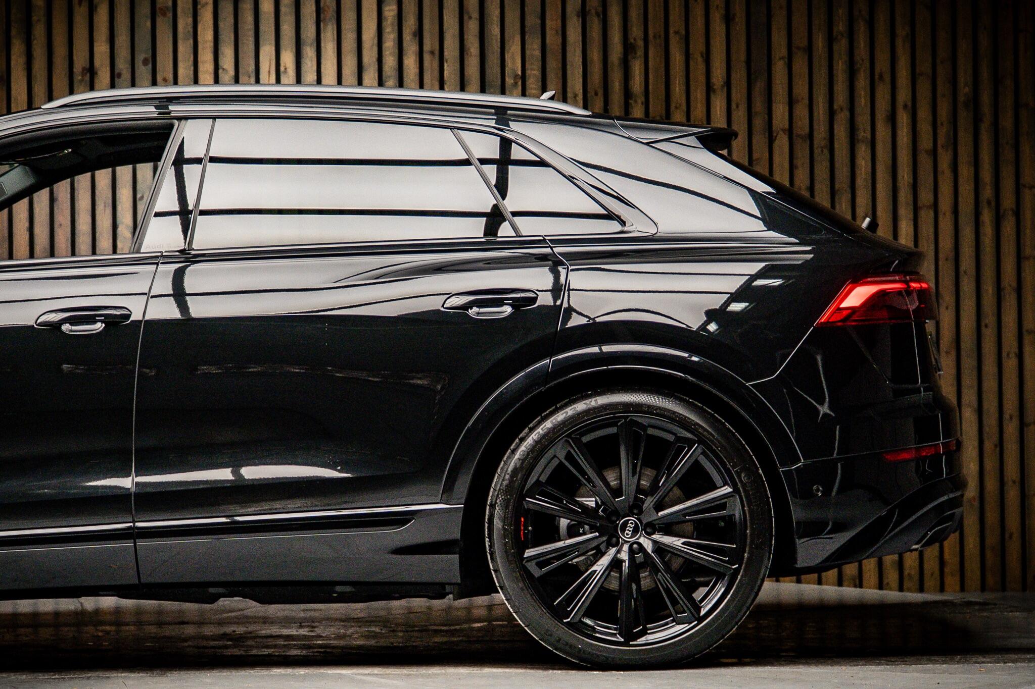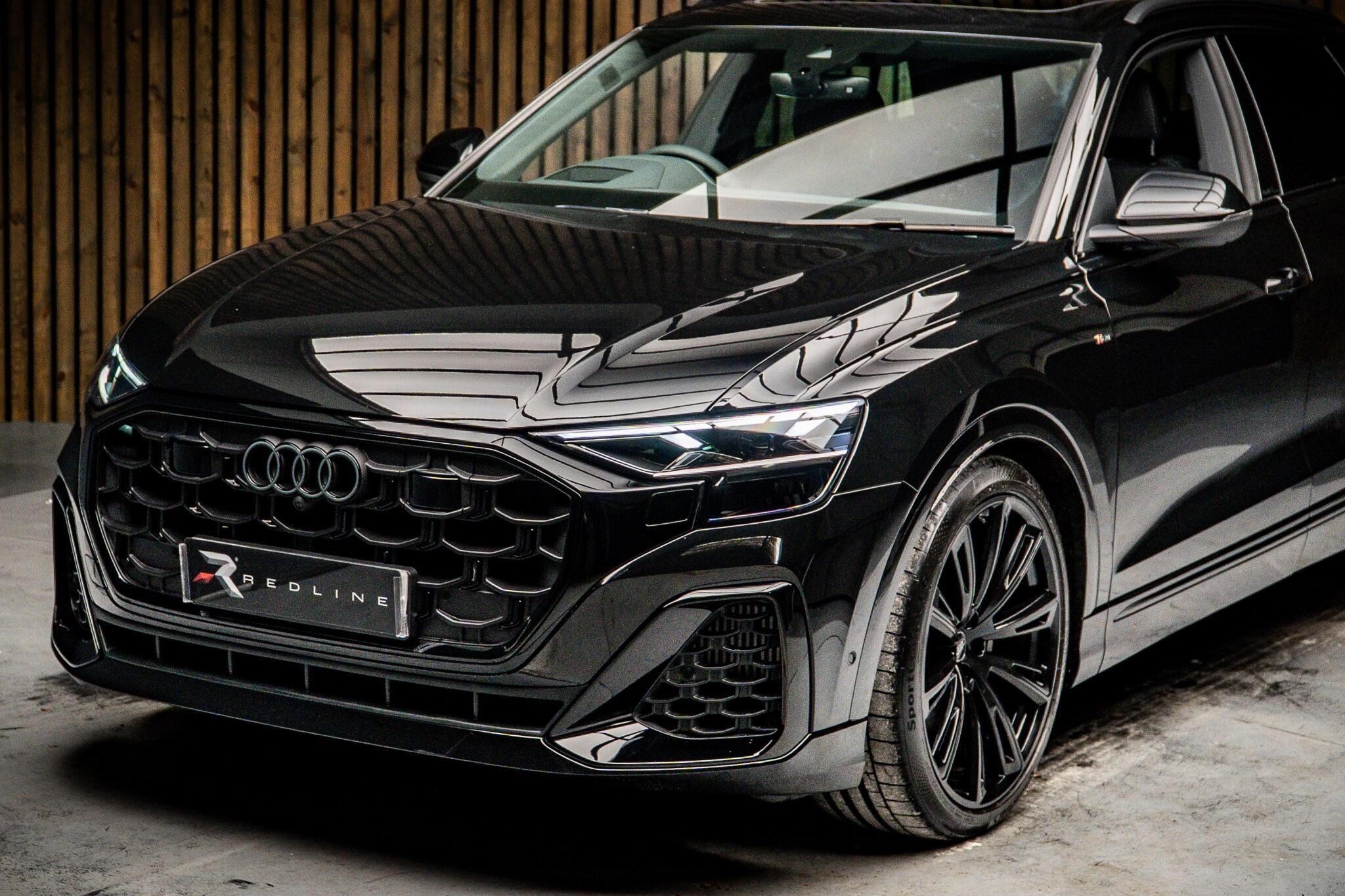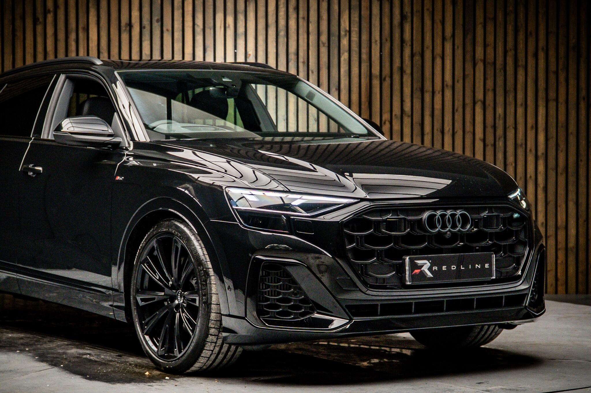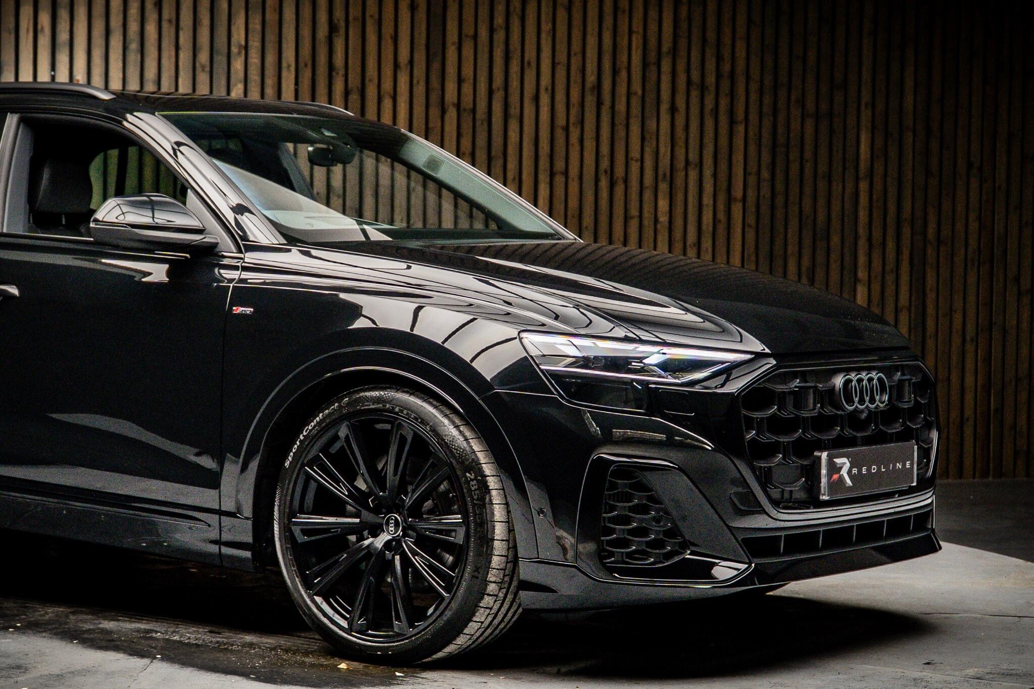 With an exceptionally low mileage of just 175 miles, this 2025 Audi Q8 TFSI V6 Black Edition represents a remarkable find. This striking example, finished in the sought after Black Edition trim, boasts a powerful 3.0 litre petrol engine paired with Audi's renowned four wheel drive system, ensuring confident performance in all conditions. As a Euro 6 compliant vehicle, it meets stringent emission standards. Its impressive towing weight of 3500 kg makes it a versatile choice for those needing to transport trailers or caravans. The Q8 TFSI V6 Black Edition comes equipped with the comprehensive Technology Pack Pro, enhancing your driving experience with features such as air conditioning, a head up display, and a luxury branded sound system for immersive audio. Enjoy the open air with the opening panoramic glass sunroof, and manoeuvre with ease thanks to the 360 degree parking assistance camera. The striking 23 inch Audi Sport alloy wheels in a black trapezoidal style, carbon exterior door mirrors, and black roof rails further accentuate its bold aesthetic. This model also offers generous boot space, perfect for luggage or shopping. Its acceleration from 0 to 62mph in a swift 5.6 seconds demonstrates its dynamic capabilities, setting it apart from many similar vehicles. This single owner vehicle is in pristine condition, reflecting its minimal use.