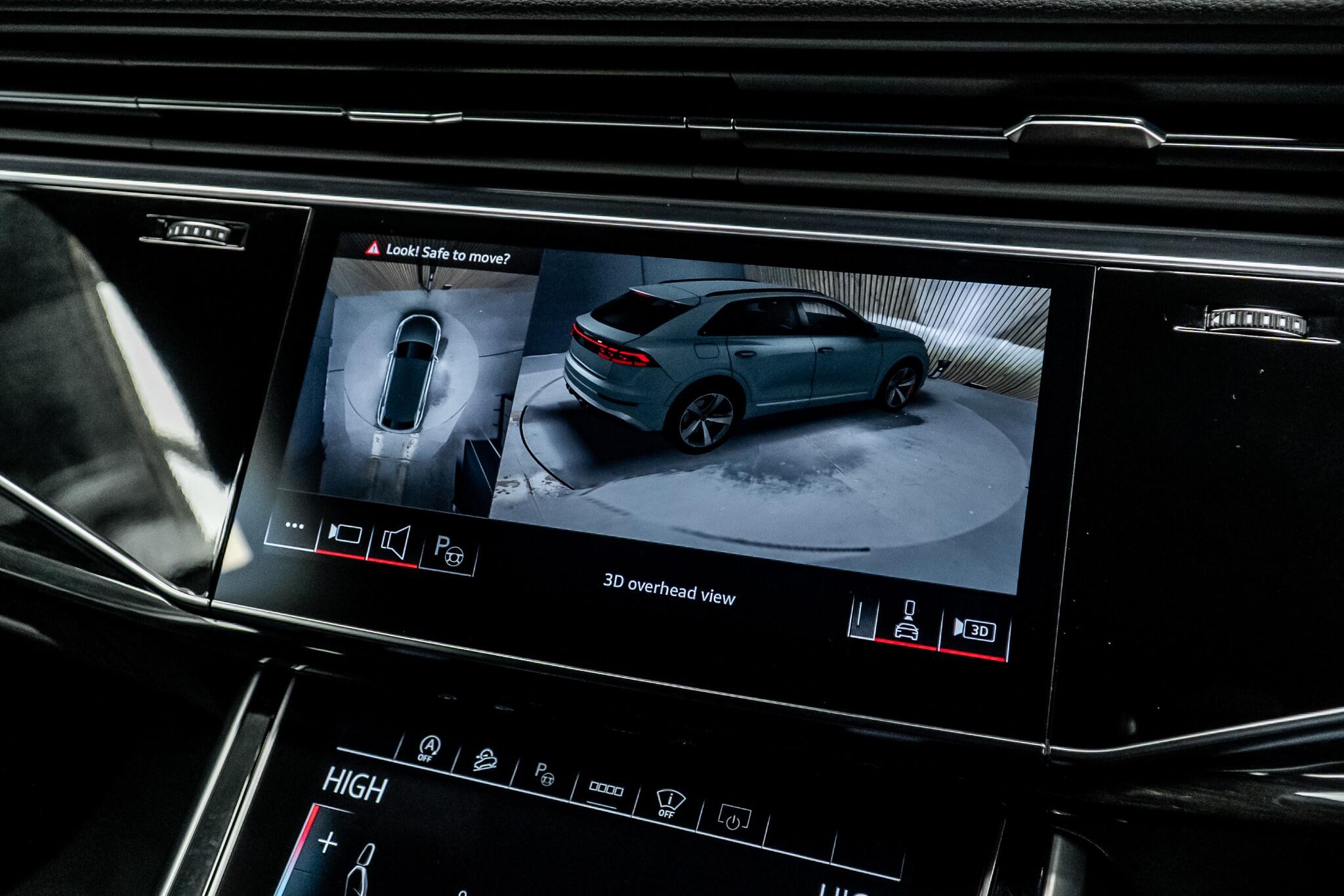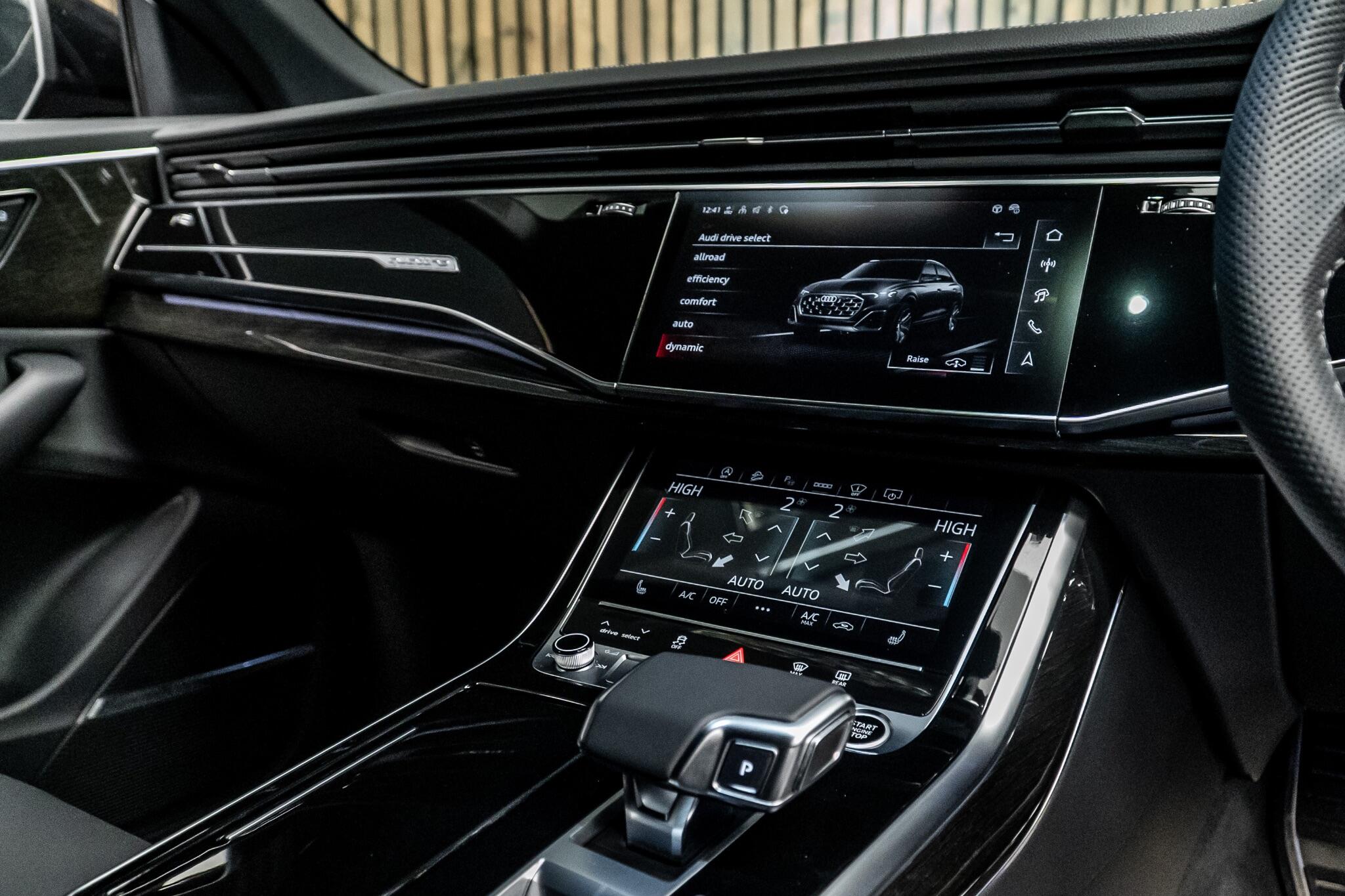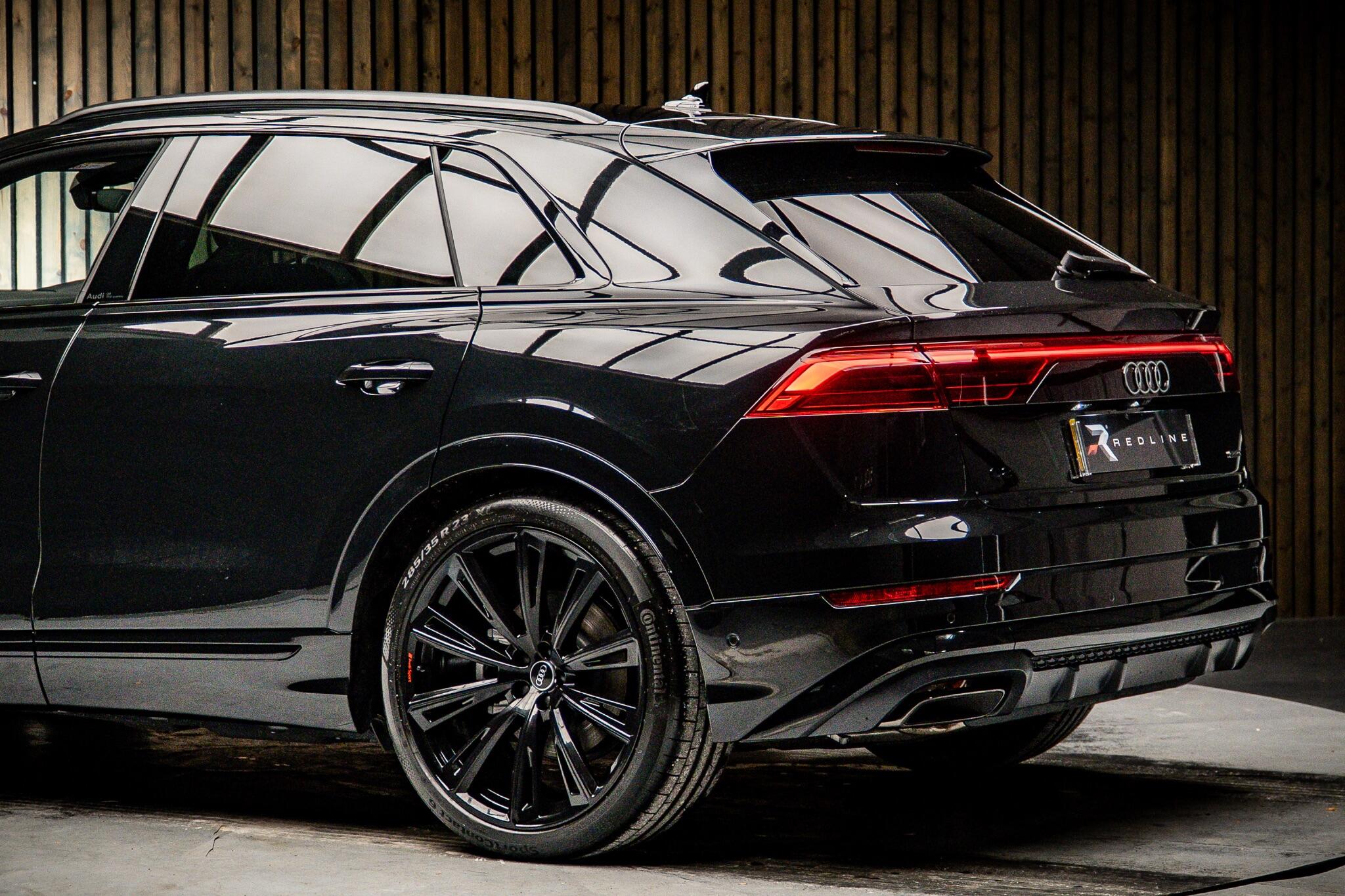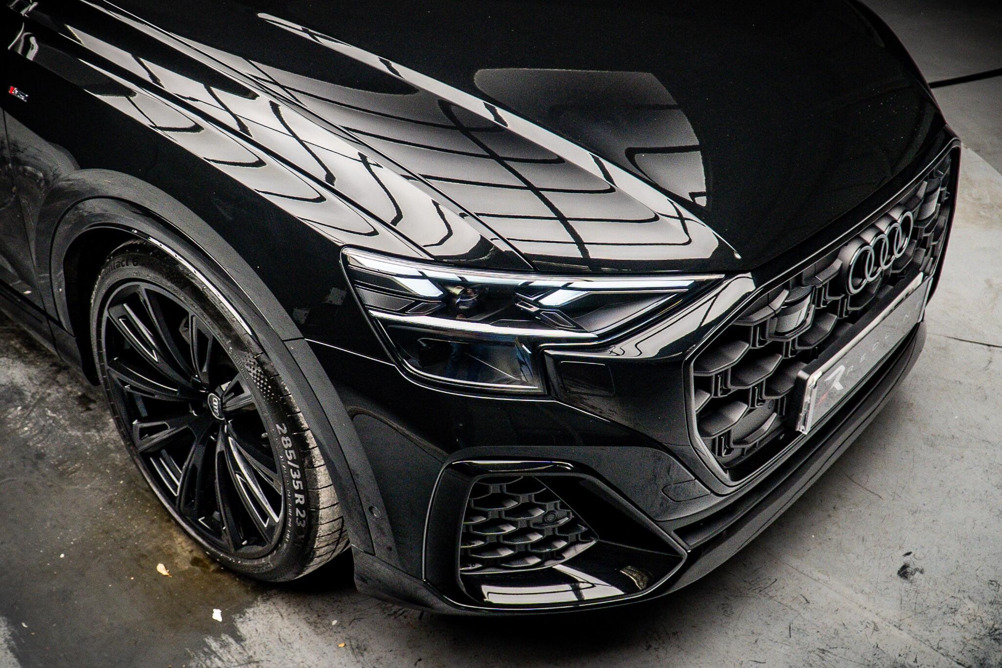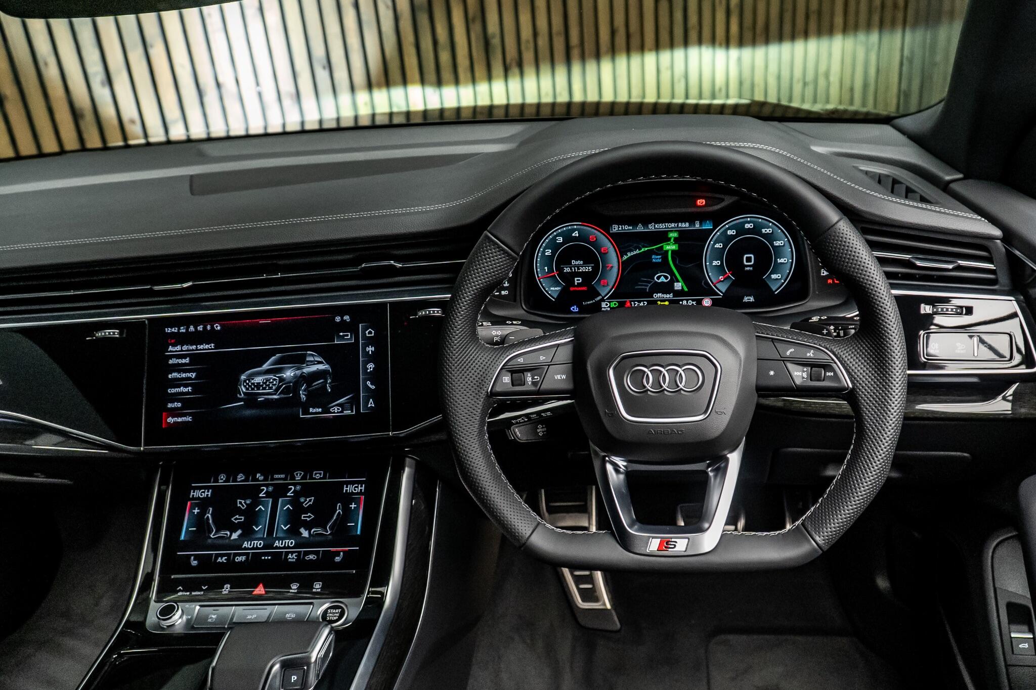 With an exceptionally low mileage of just 175 miles, this 2025 Audi Q8 TFSI V6 Black Edition represents a remarkable find. This striking example, finished in the sought after Black Edition trim, boasts a powerful 3.0 litre petrol engine paired with Audi's renowned four wheel drive system, ensuring confident performance in all conditions. As a Euro 6 compliant vehicle, it meets stringent emission standards. Its impressive towing weight of 3500 kg makes it a versatile choice for those needing to transport trailers or caravans. The Q8 TFSI V6 Black Edition comes equipped with the comprehensive Technology Pack Pro, enhancing your driving experience with features such as air conditioning, a head up display, and a luxury branded sound system for immersive audio. Enjoy the open air with the opening panoramic glass sunroof, and manoeuvre with ease thanks to the 360 degree parking assistance camera. The striking 23 inch Audi Sport alloy wheels in a black trapezoidal style, carbon exterior door mirrors, and black roof rails further accentuate its bold aesthetic. This model also offers generous boot space, perfect for luggage or shopping. Its acceleration from 0 to 62mph in a swift 5.6 seconds demonstrates its dynamic capabilities, setting it apart from many similar vehicles. This single owner vehicle is in pristine condition, reflecting its minimal use.