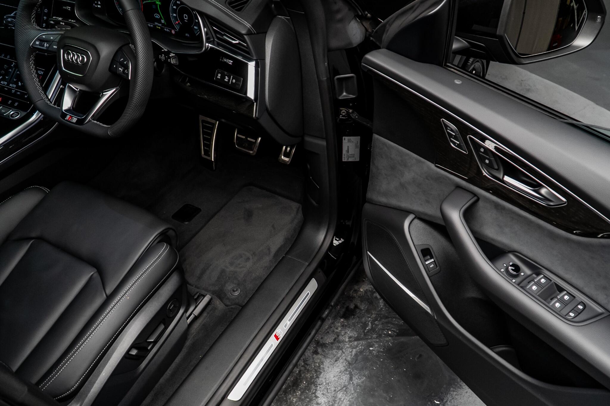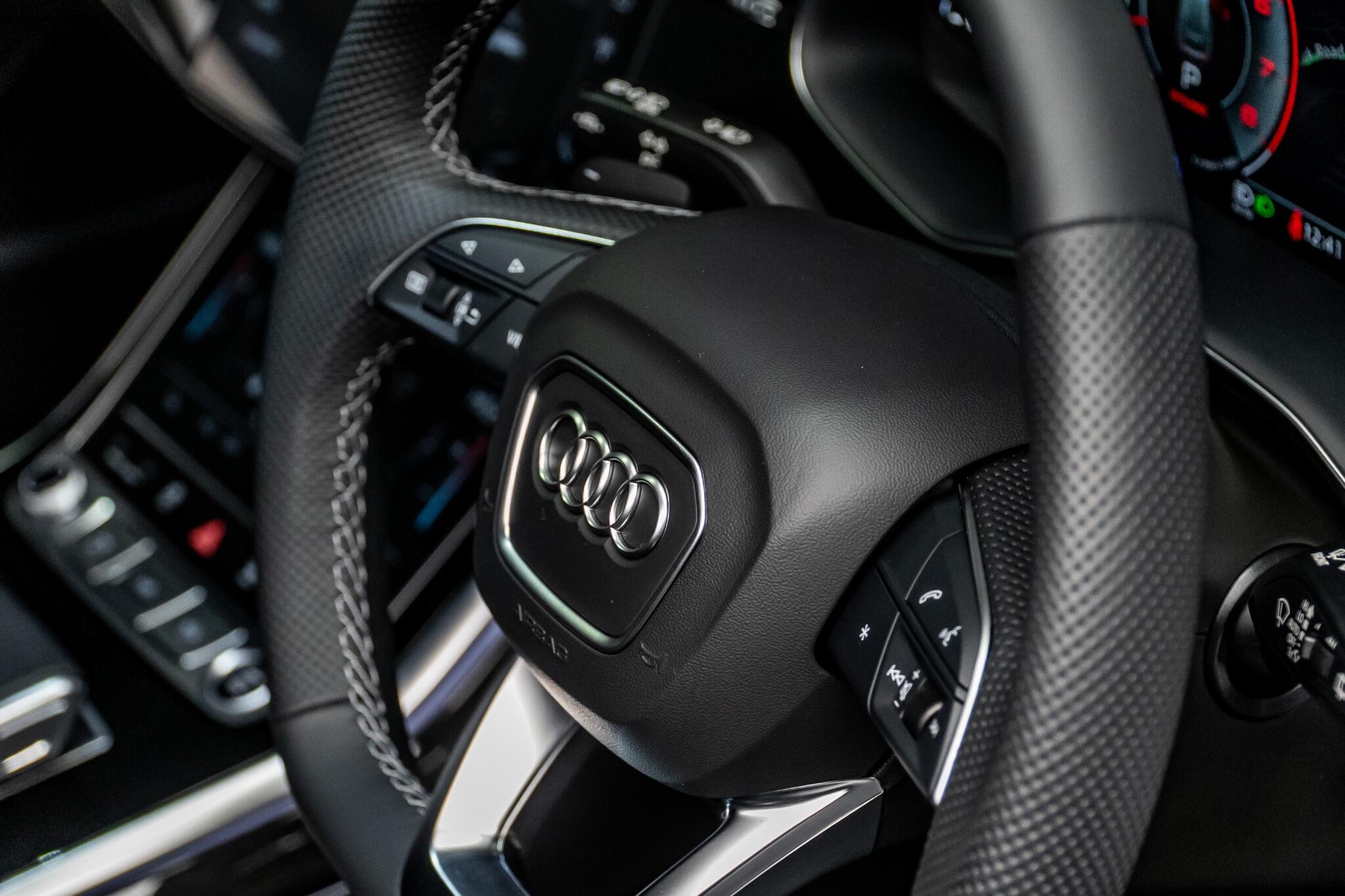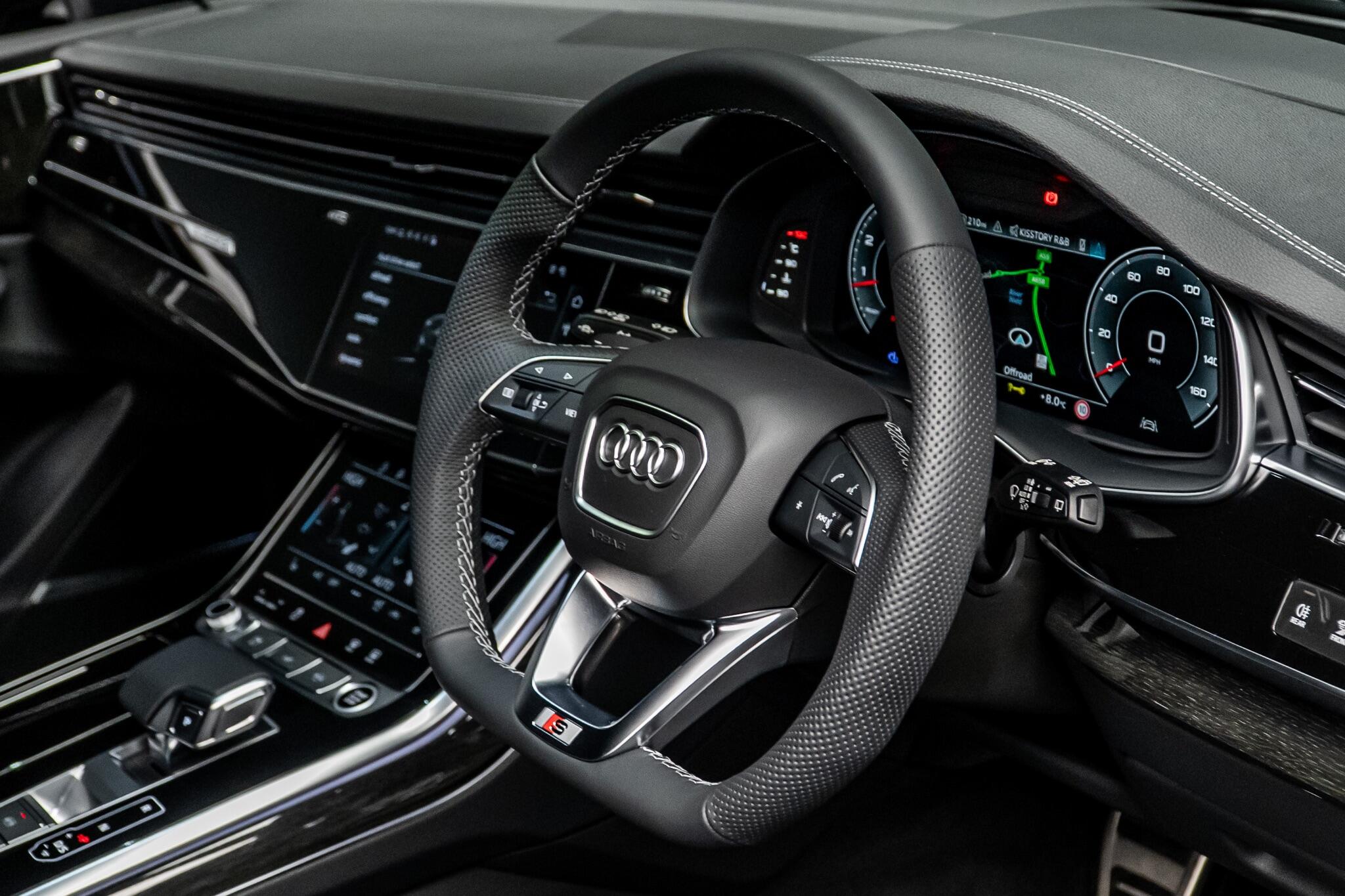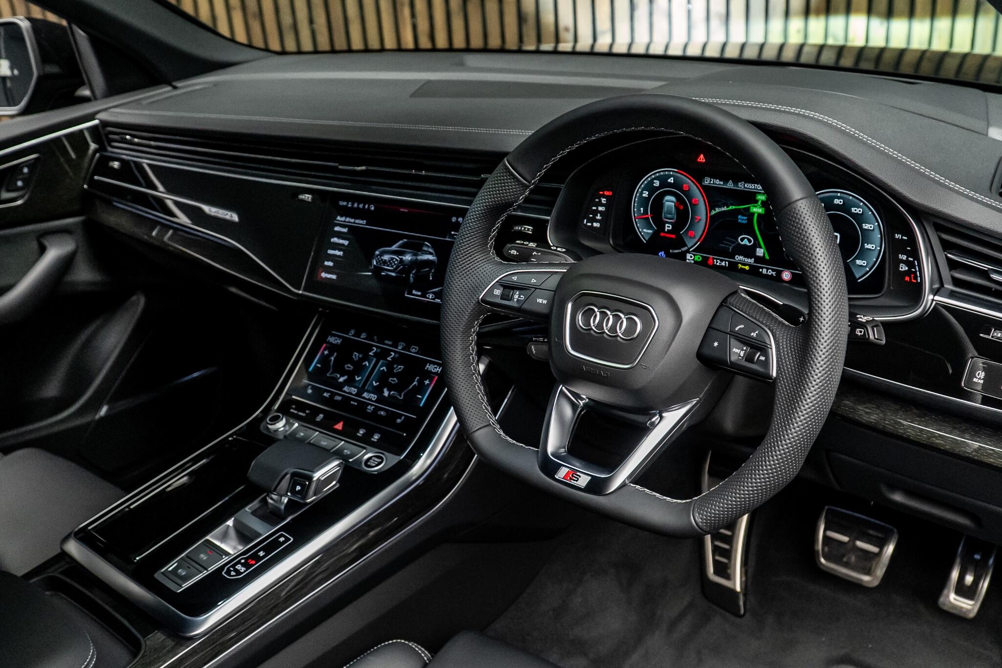 With an exceptionally low mileage of just 175 miles, this 2025 Audi Q8 TFSI V6 Black Edition represents a remarkable find. This striking example, finished in the sought after Black Edition trim, boasts a powerful 3.0 litre petrol engine paired with Audi's renowned four wheel drive system, ensuring confident performance in all conditions. As a Euro 6 compliant vehicle, it meets stringent emission standards. Its impressive towing weight of 3500 kg makes it a versatile choice for those needing to transport trailers or caravans. The Q8 TFSI V6 Black Edition comes equipped with the comprehensive Technology Pack Pro, enhancing your driving experience with features such as air conditioning, a head up display, and a luxury branded sound system for immersive audio. Enjoy the open air with the opening panoramic glass sunroof, and manoeuvre with ease thanks to the 360 degree parking assistance camera. The striking 23 inch Audi Sport alloy wheels in a black trapezoidal style, carbon exterior door mirrors, and black roof rails further accentuate its bold aesthetic. This model also offers generous boot space, perfect for luggage or shopping. Its acceleration from 0 to 62mph in a swift 5.6 seconds demonstrates its dynamic capabilities, setting it apart from many similar vehicles. This single owner vehicle is in pristine condition, reflecting its minimal use.