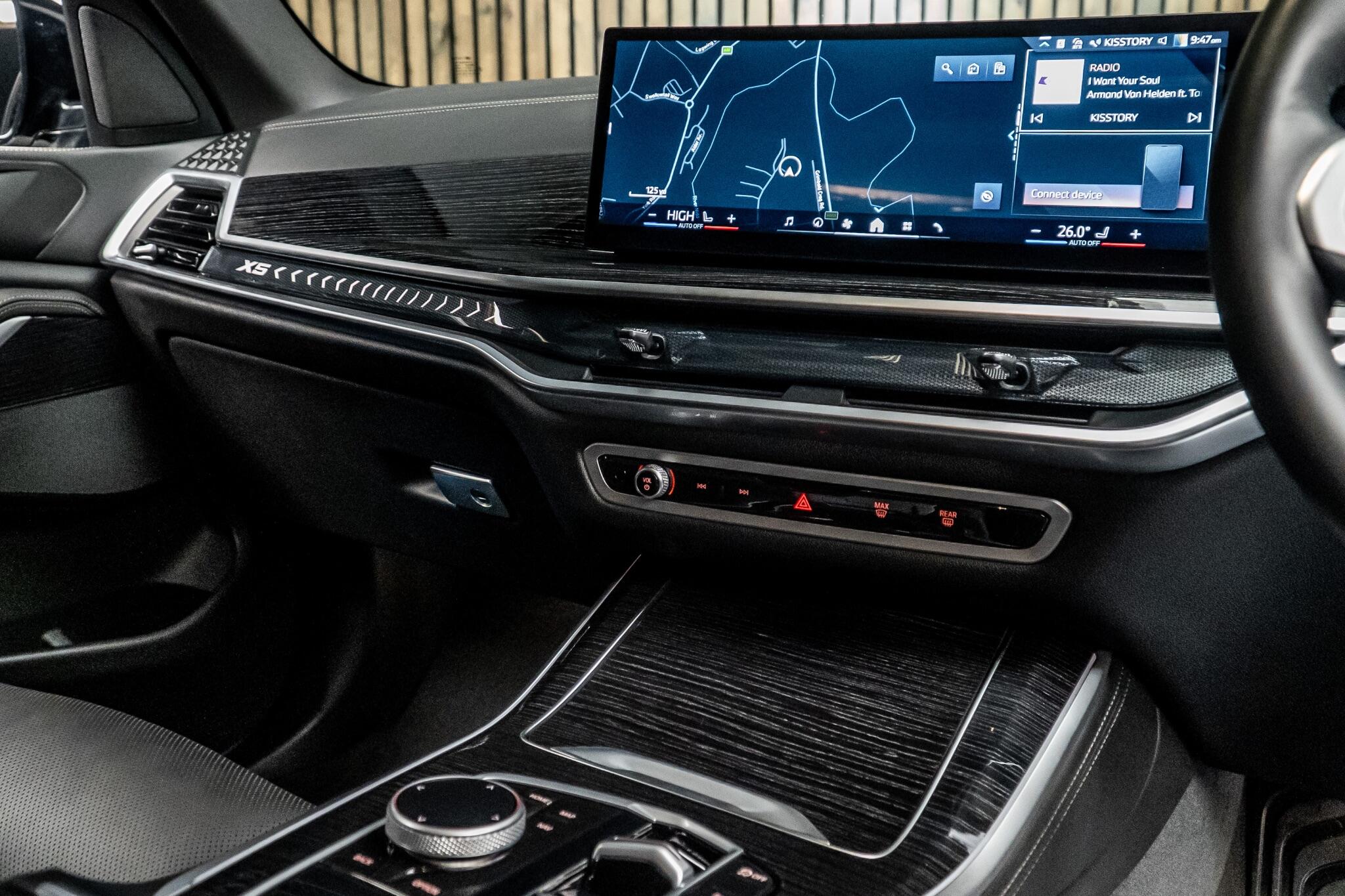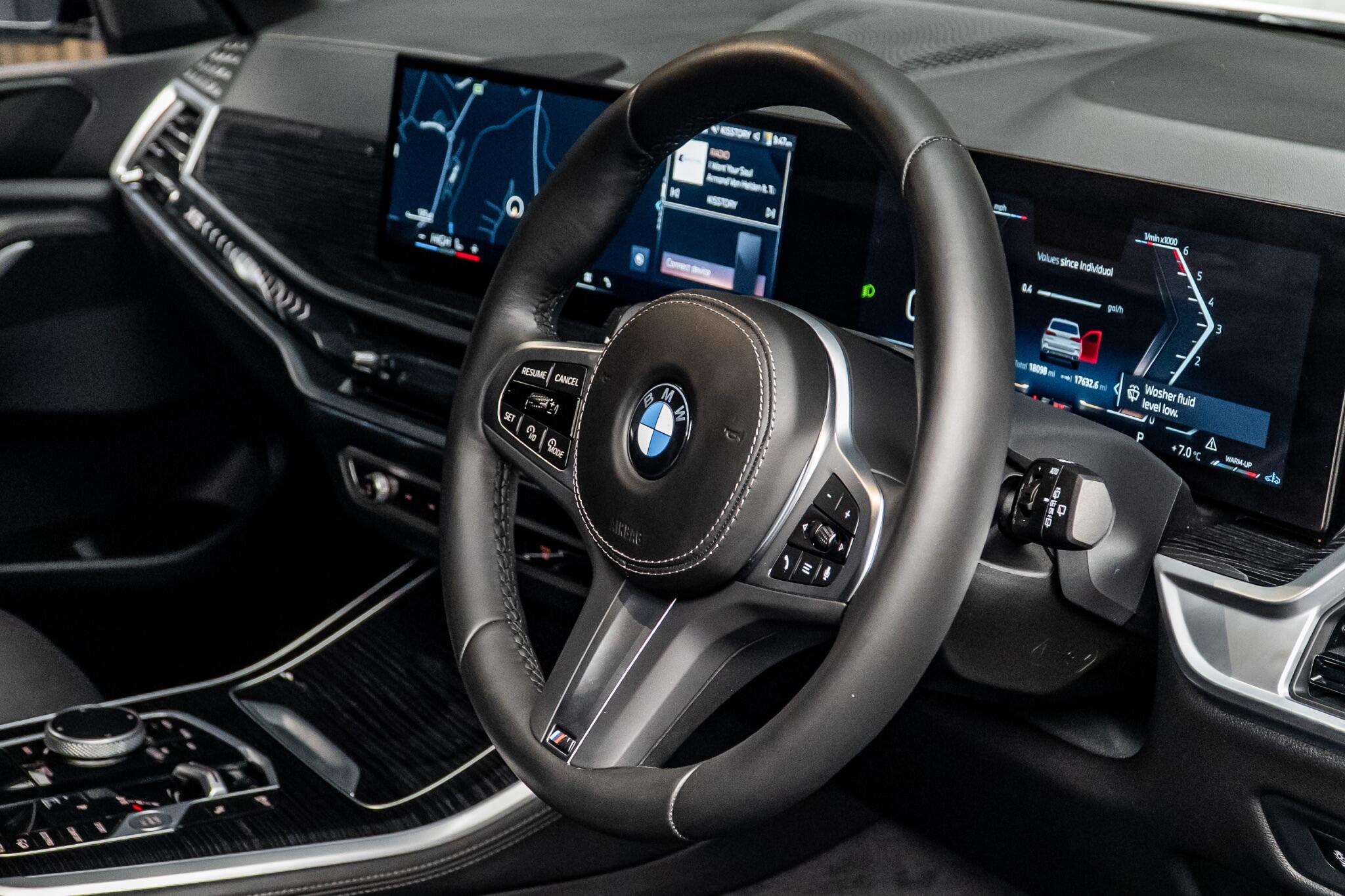 This 2025 BMW X5 30d M Sport is a superb example, having had only one owner since new. This impressive vehicle boasts a powerful 3.0L Diesel Hybrid engine paired with a Four Wheel Drive system, ensuring excellent performance and capability. As a Euro 6 compliant model, it meets stringent emission standards. The M Sport trim enhances its sporty appeal and driving dynamics. Inside, you'll find a wealth of features designed for comfort and convenience, including Smartphone Integration with Android Auto and Apple CarPlay, Electric Memory Seats, heated front seats, and automatic 2.5 zone climate control. The BMW Live Cockpit Plus, complete with Bluetooth connectivity, keeps you informed and entertained. The BMW X5 30d M Sport offers a compelling blend of performance and practicality. Its acceleration from 0-62mph in just 6.1 seconds demonstrates its dynamic capabilities, setting it apart from many other vehicles in its class. Furthermore, its substantial towing weight of 2700 kg makes it a highly versatile option for those needing to tow. The generous boot space provides ample room for luggage, shopping, or equipment, making it ideal for families and adventurers alike. This combination of speed, towing power, and storage capacity underscores the X5's superior all round usability.