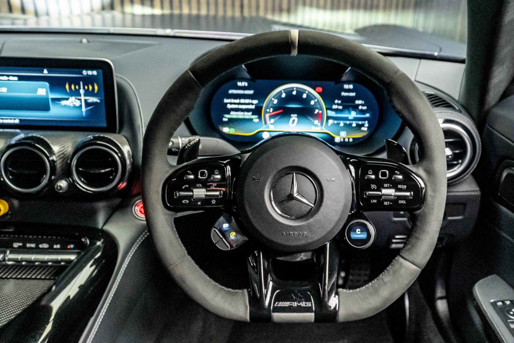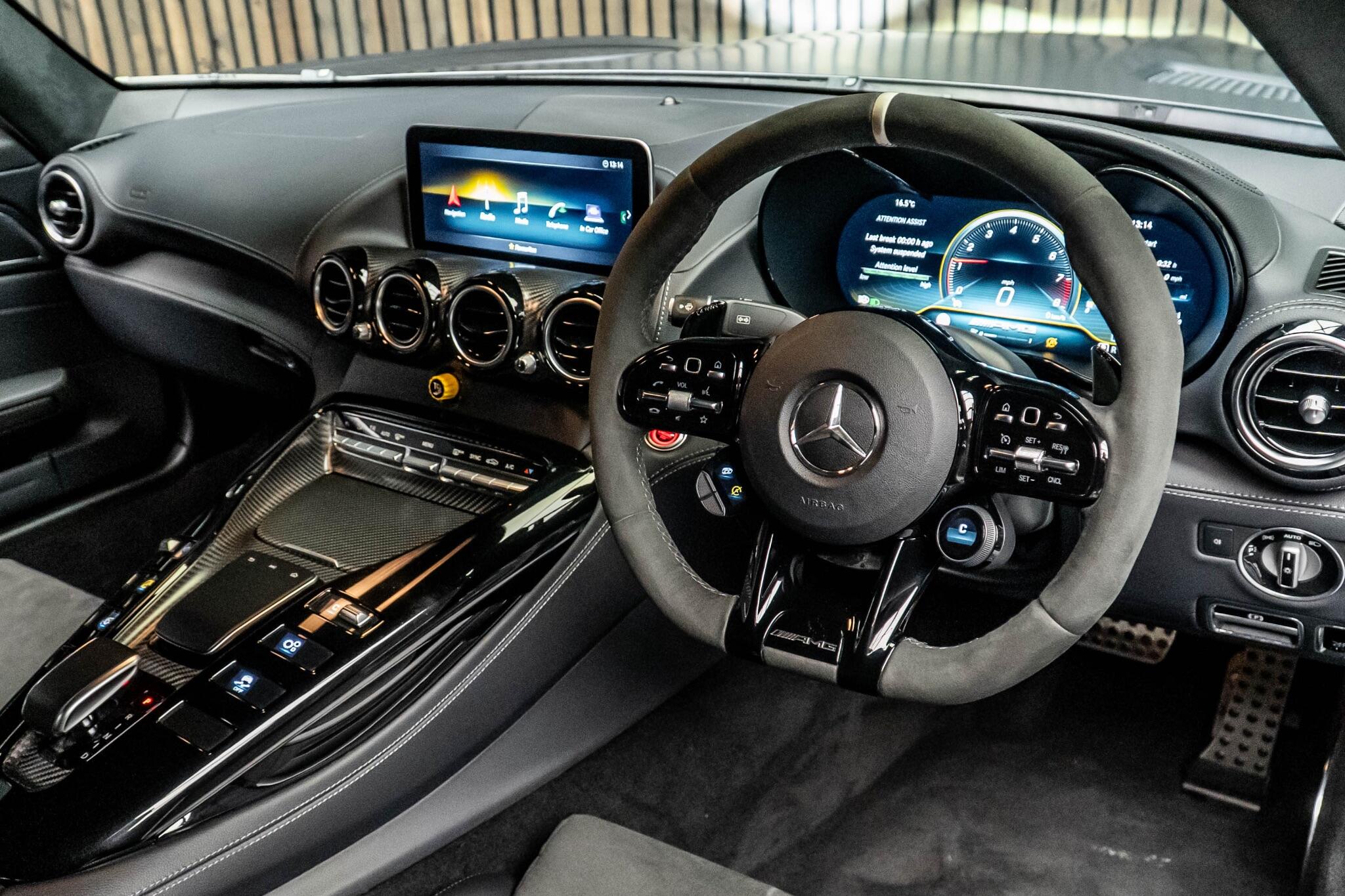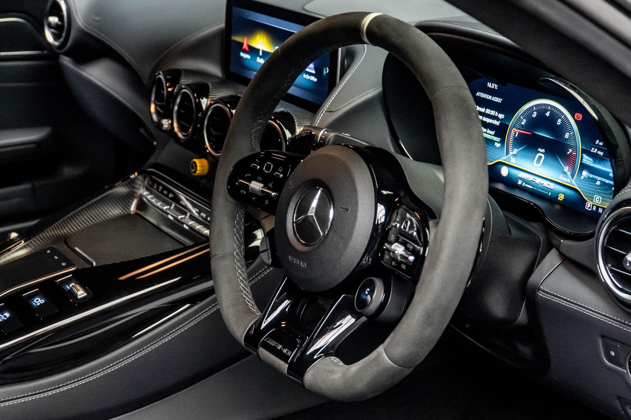 This 2020 Mercedes Benz AMG GT V8 BiTurbo R PRO is a remarkable example of performance engineering. Powered by a potent 4.0L V8 BiTurbo petrol engine, this Euro 6 compliant model delivers exhilarating acceleration, reaching 0-62mph in a swift 3.6 seconds. Experience superior illumination with LED High Performance Headlamps featuring Adaptive Highbeam Assist, complemented by Headlamp Assist for automatic activation. Inside, the cabin is enhanced by the premium Burmester Surround Sound System and the convenience of THERMOTRONIC automatic climate control. Manoeuvring is made effortless with Parking Assist PARKTRONIC, providing front and rear parking sensors. The R PRO trim level signifies a focus on dynamic capability and driver engagement, setting this AMG GT apart. The impressive 0-62mph time of 3.6 seconds is a clear indicator of its potent performance, demonstrating a significant advantage over many other vehicles in its class. This combination of advanced technology, powerful performance, and sophisticated comfort features makes the 2020 Mercedes Benz AMG GT V8 BiTurbo R PRO a truly exceptional driving machine.