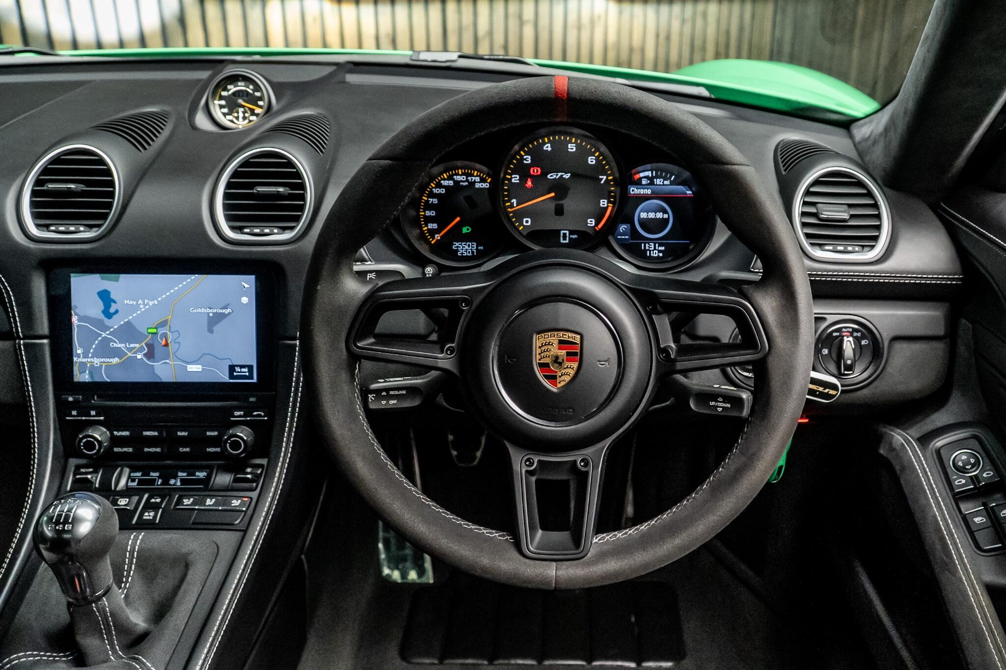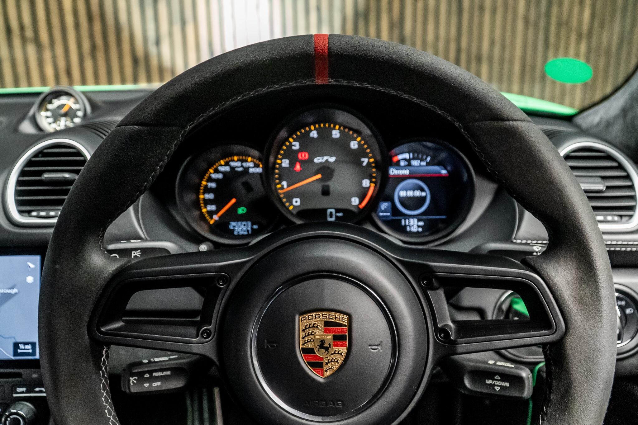This 2020 Porsche 718 Cayman GT4 offers an exceptional driving experience, boasting a powerful 4.0 litre petrol engine and meeting Euro 6 emission standards. Inside, you'll find striking Full Bucket seats complemented by decorative silver stitching and silver grey seat belts, creating a refined cabin. The steering wheel rim features a distinctive red top centre marking, adding a touch of sporty flair. Comfort is assured with air conditioning that includes an integrated active carbon filter. The performance of this GT4 is truly remarkable, achieving 0-62mph in just 4.4 seconds, a figure that places it ahead of many comparable vehicles. This impressive acceleration, combined with its low insurance group rating, makes it a compelling choice for those seeking both exhilarating performance and practical ownership. This Porsche 718 Cayman GT4 is designed to deliver an engaging and rewarding drive.