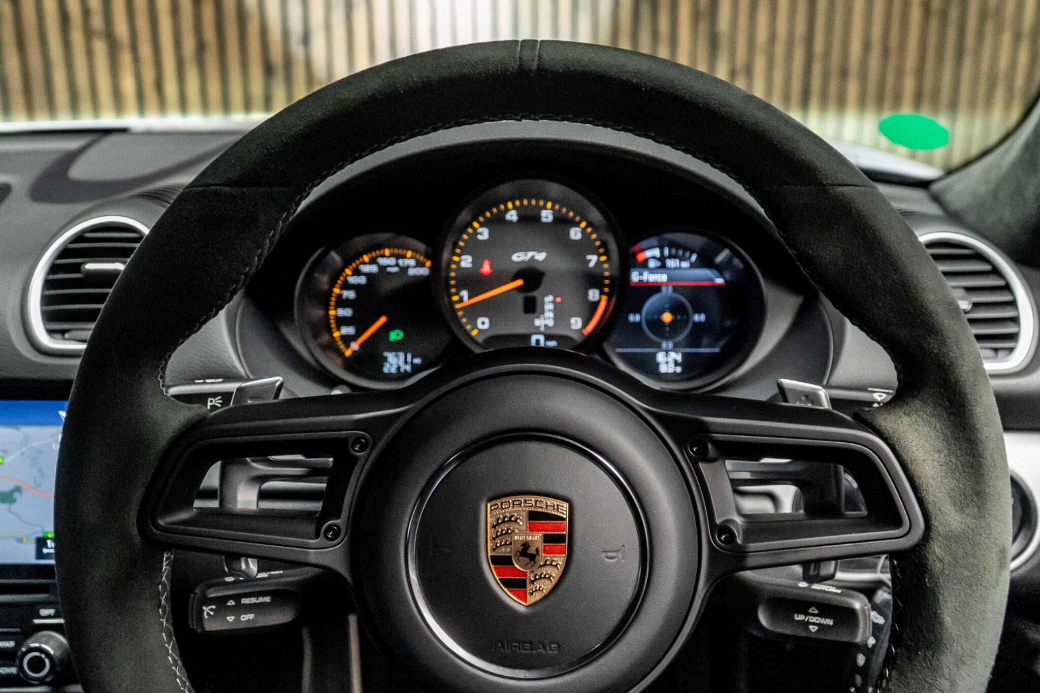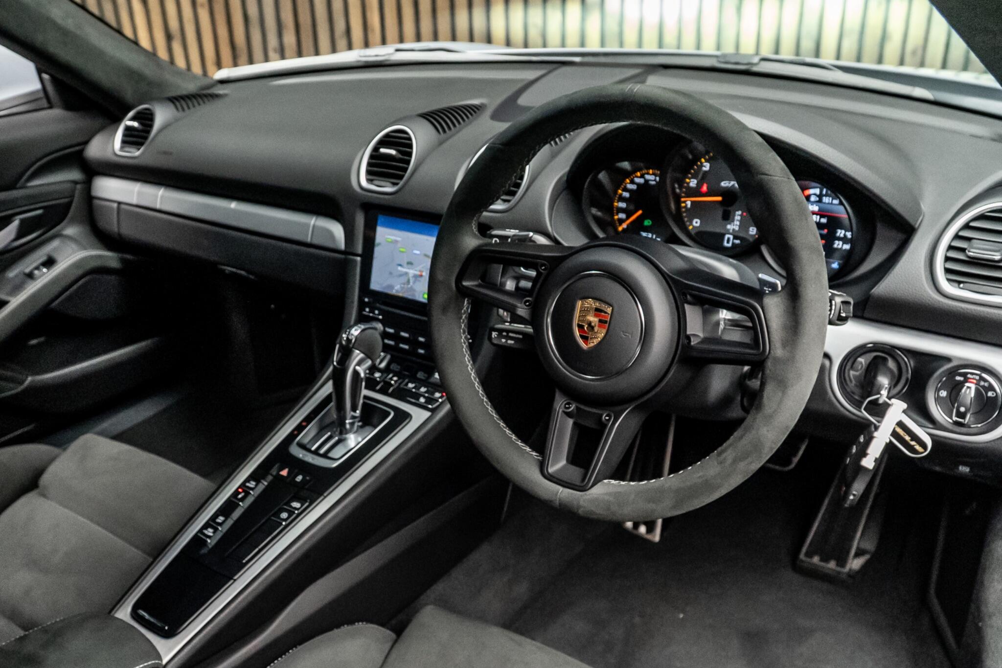 This 2023 Porsche 718 Cayman GT4 presents a unique ownership opportunity, having been cherished by just one owner since new. This exceptional sports car is powered by a potent 4.0 litre petrol engine, meeting Euro 6 emission standards. Inside, you'll find comfort and convenience with Adaptive Sports Seats Plus offering 18 electrical adjustments, and the immersive BOSE Surround Sound System. Navigating and staying connected is effortless thanks to the PCM Porsche Communication Management system, which includes navigation, Apple CarPlay, and Bluetooth. The Bi Xenon headlights with integrated LED daytime running lights, coupled with automatic headlight activation and welcome home lighting, ensure excellent visibility. Experience exhilarating performance with the 718 Cayman GT4's impressive 0-62mph acceleration in just 3.9 seconds, a figure that clearly demonstrates its superior capability compared to other vehicles in its class. This model also benefits from a low insurance group, making it an attractive proposition for enthusiasts. The combination of its singular ownership, advanced technology, and thrilling performance makes this Porsche 718 Cayman GT4 a truly outstanding choice.