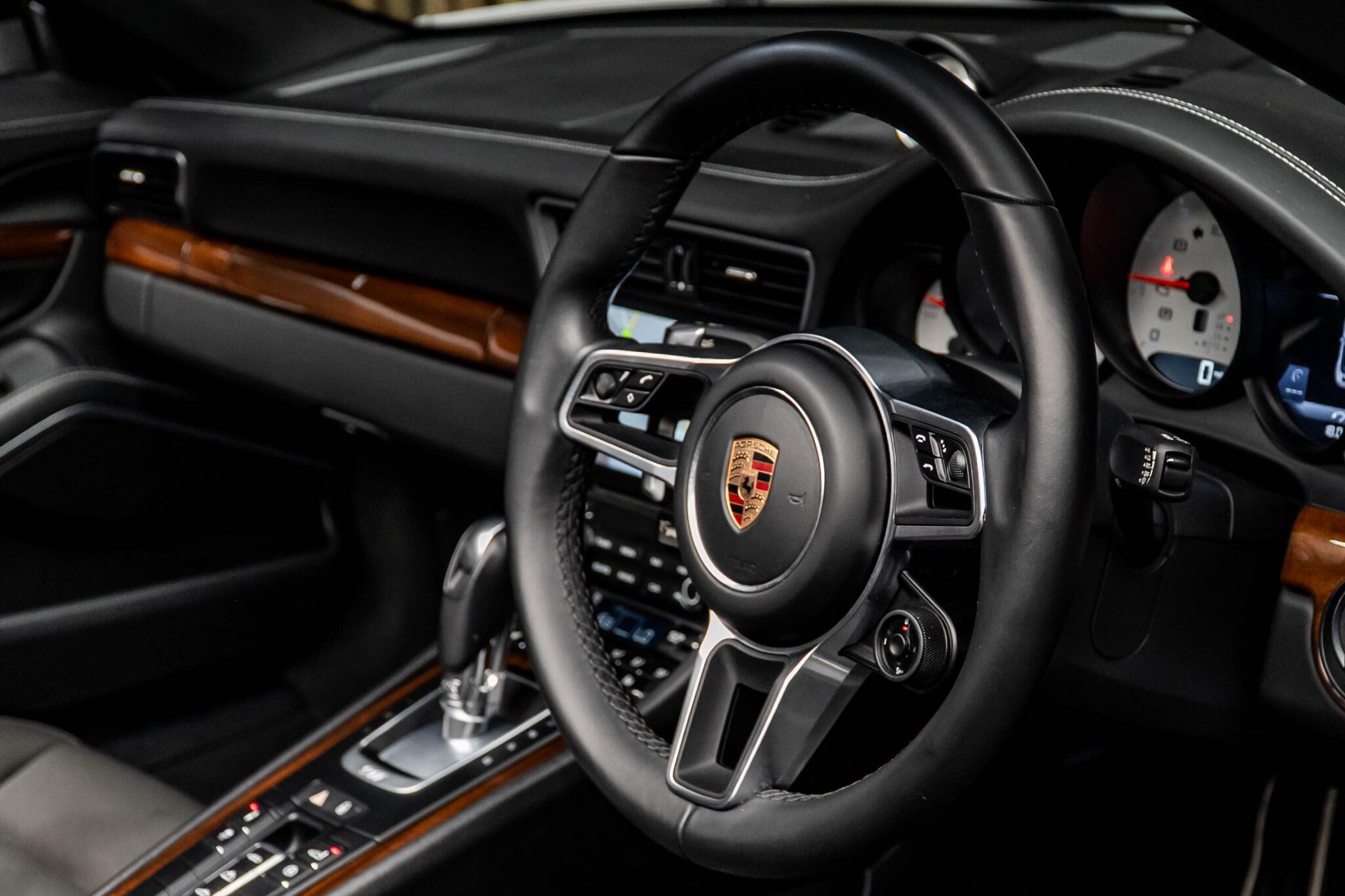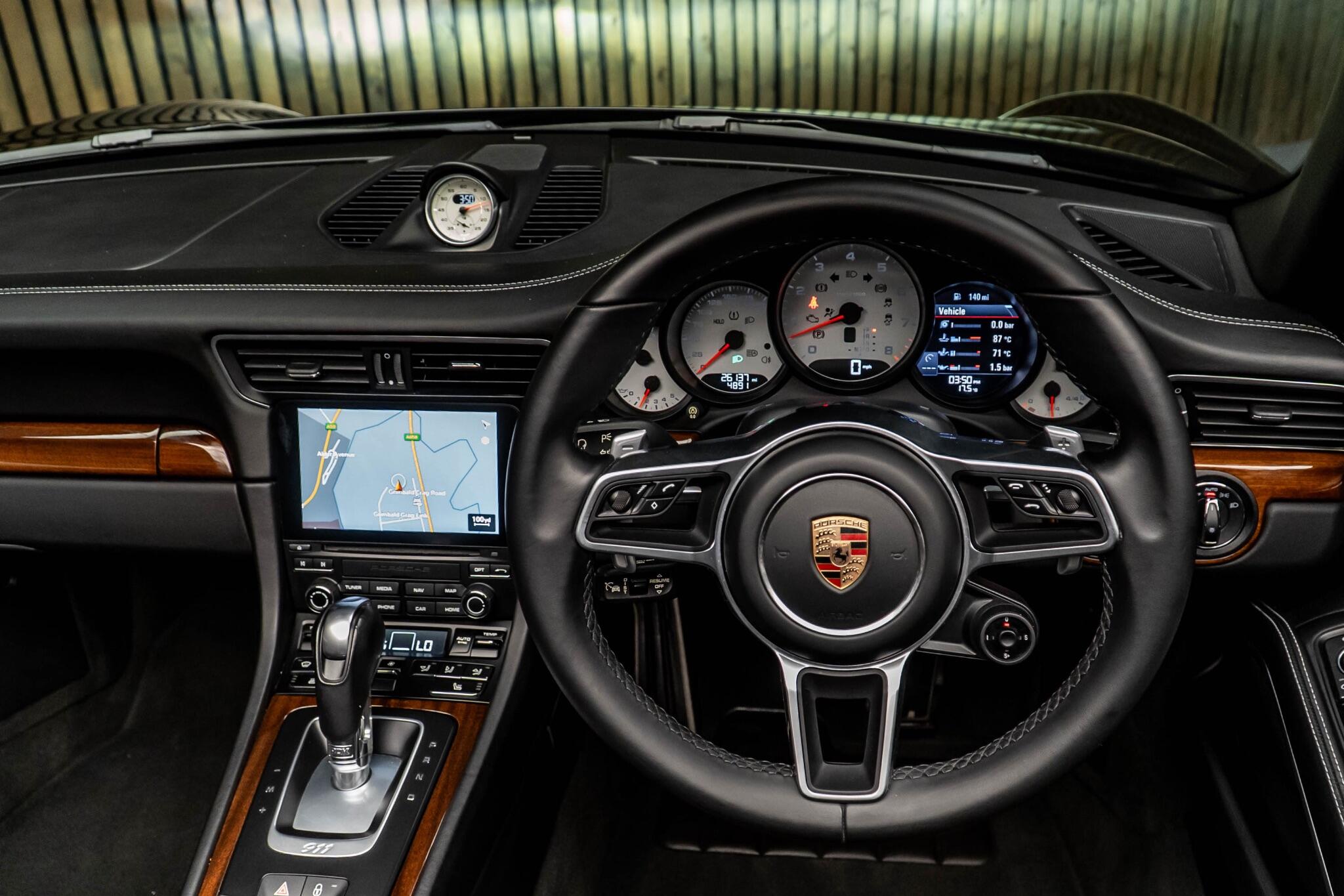 This 2017 Porsche 911 T 991 Carrera 4S boasts exceptionally low mileage for its age, having covered just 24,955 miles. As a Euro 6 compliant model, it features a potent 3.0 litre petrol engine paired with a four wheel drive drivetrain, ensuring dynamic performance. This Carrera 4S is equipped with practical notable features including Park Assist with rear sensors for easier manoeuvring, and Two Zone Automatic Climate Control for personalised comfort. Connectivity is enhanced with Preparation for Mobile Phone, including Bluetooth, and Apple CarPlay integration, while Bi Xenon headlights provide excellent visibility. The performance of this Porsche 911 is truly a highlight, with an impressive 0 to 62 miles per hour acceleration time of just 4.0 seconds. This swift acceleration indicates a superior driving experience compared to many other vehicles in its class. The combination of its advanced technology, low mileage, and the renowned engineering of the Porsche 911 makes this T 991 Carrera 4S a compelling choice for discerning drivers.
