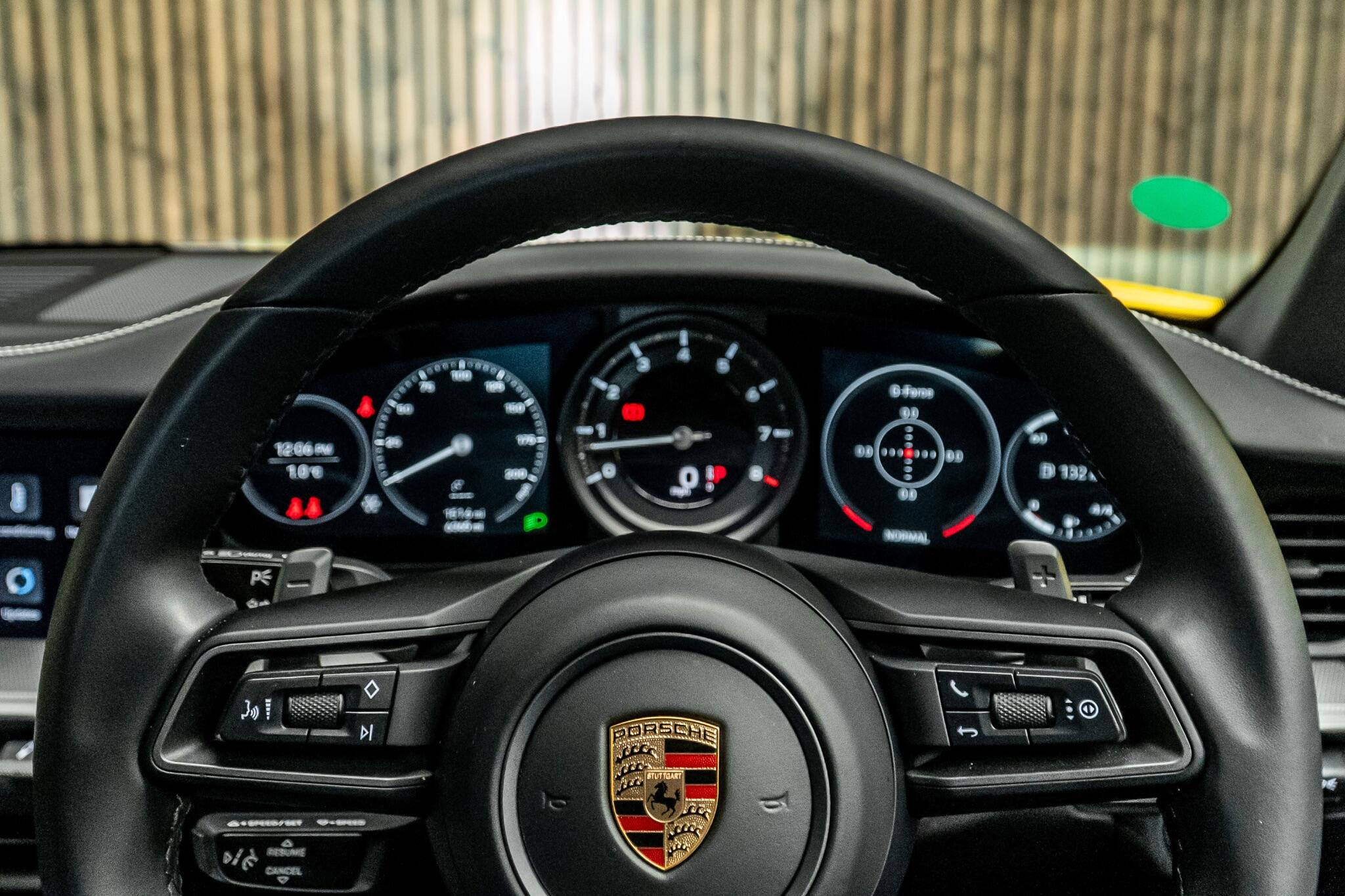 This 2024 Porsche 911 T 992 Carrera S presents an exceptional opportunity with its remarkably low mileage of just 6426 miles, having been cherished by only one owner. This Euro 6 compliant model boasts a potent 3.0L petrol engine, delivering exhilarating performance. Enhancing its already impressive appeal are desirable features such as the Aerokit, heated front seats for ultimate comfort, and Park Assist with front and rear sensors for effortless manoeuvring. The convenience of automatic headlight activation with welcome home lighting and seamless smartphone integration via Apple CarPlay and Android Auto further elevate the driving experience. The performance of this 911 T 992 Carrera S is truly outstanding, highlighted by its rapid 0-62mph acceleration in just 3.7 seconds. This impressive speed demonstrates its superior engineering and dynamic capabilities when compared to other vehicles in its class. Combined with its single owner provenance and minimal mileage, this Porsche 911 represents a superb example of automotive excellence, ready to be enjoyed by its next custodian.
