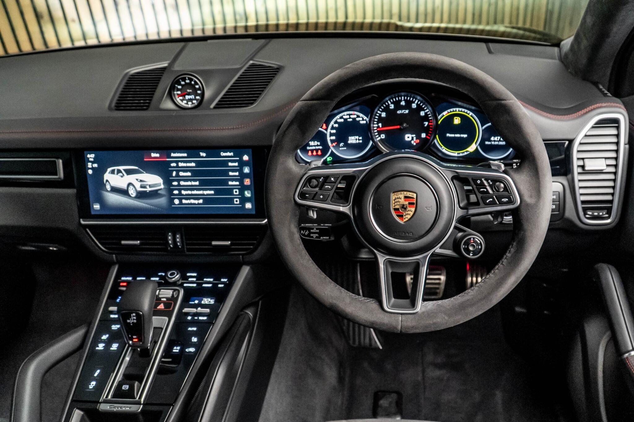 This 2023 Porsche Cayenne T V8 GTS is a remarkable example, having had only one owner since new. Powered by a potent 4.0 litre petrol engine and featuring a Four Wheel Drive drivetrain, this Euro 6 compliant vehicle offers impressive performance. Its GTS trim level is complemented by a suite of advanced features, including ParkAssist for effortless manoeuvring with front and rear sensors, a reversing camera, and mobile phone preparation with Bluetooth connectivity. Enjoy seamless integration with your digital life thanks to Apple CarPlay and Android Auto, while the tinted LED main headlights with Porsche Dynamic Light System ensure excellent visibility. You'll also appreciate the generous boot space, perfect for all your needs. The performance of this Cayenne is truly exceptional, with a rapid 0 to 62mph acceleration time of just 4.8 seconds, demonstrating its superior engineering. These highlights indicate how this vehicle stands out from others in its class, offering a more engaging and capable driving experience.