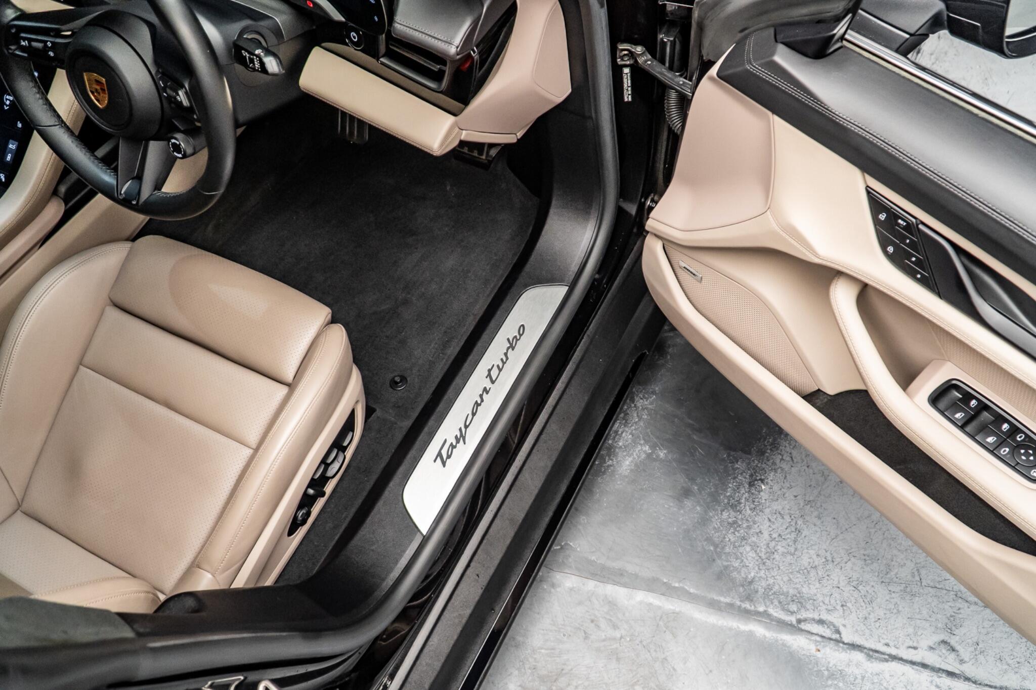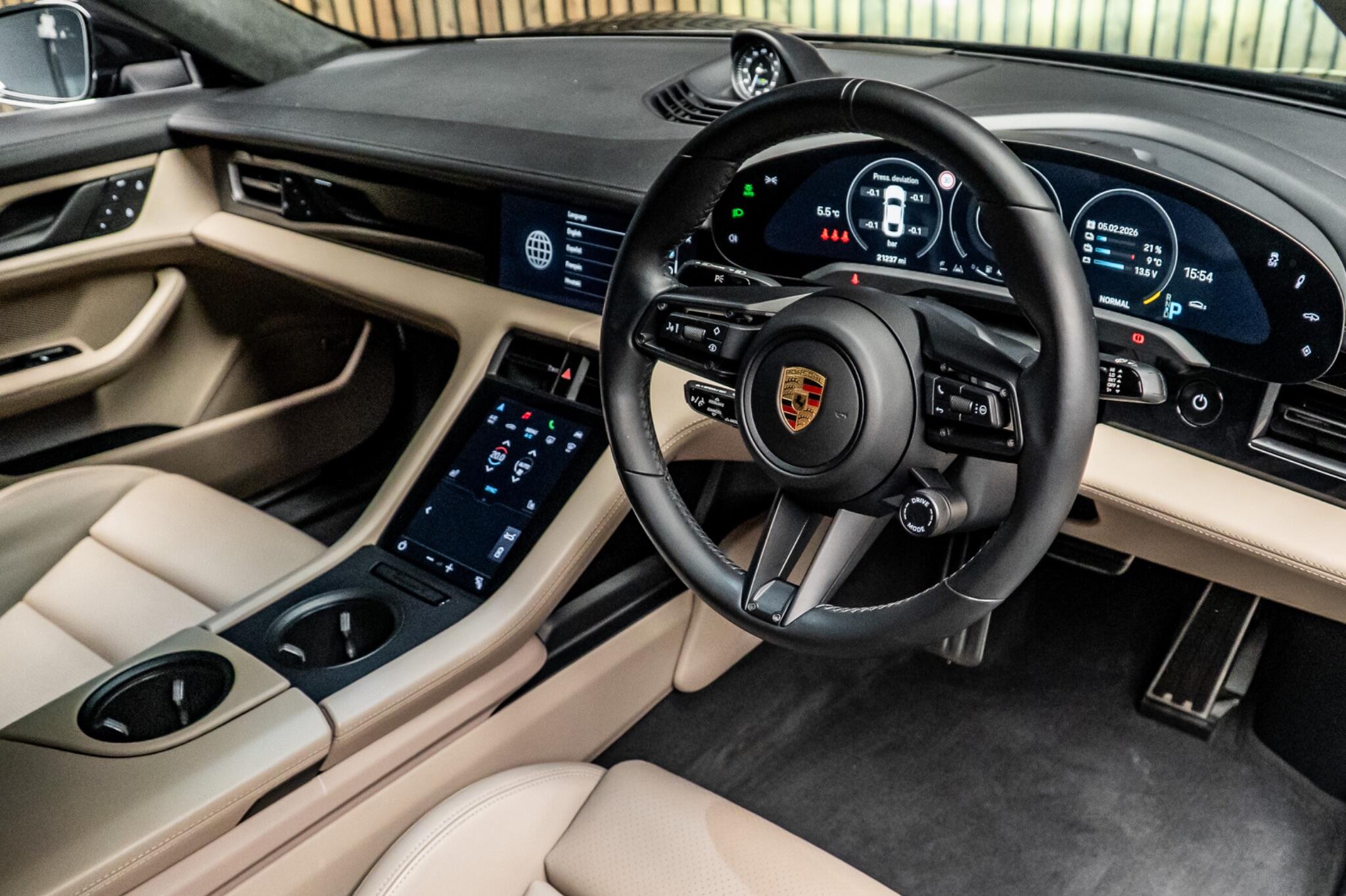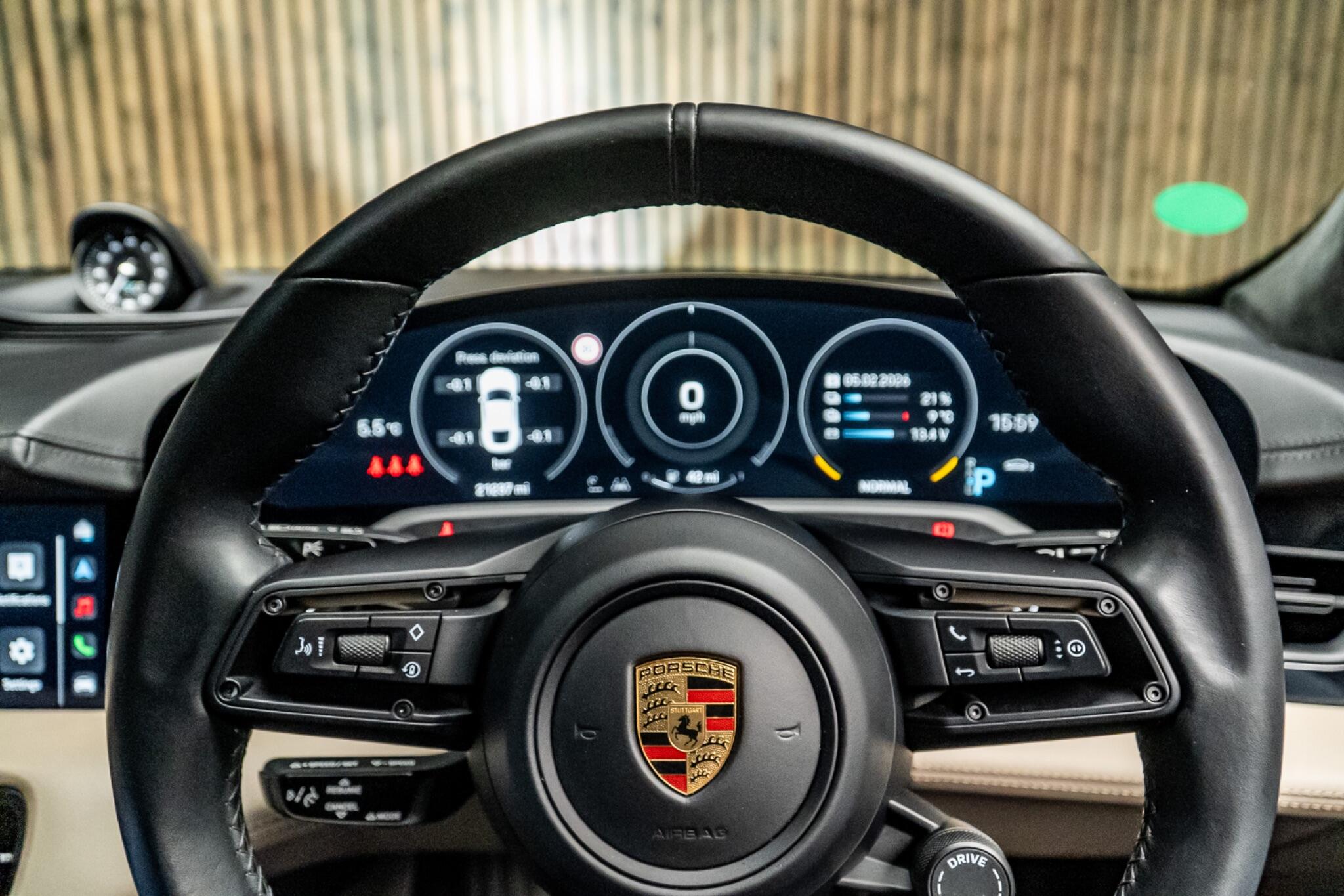 This 2021 Porsche Taycan Performance Plus Turbo presents an exceptional ownership proposition, having been meticulously maintained by a single owner and boasting remarkably low mileage for its age at just 21,229 miles. This all electric, four wheel drive saloon offers a potent blend of performance and luxury, featuring a substantial 93 kWh battery that provides a maximum range of 281 miles when new. Charging is convenient, with a full charge at home taking approximately 13 hours and 30 minutes using a 7kW charger, while rapid public charging can replenish the battery from empty to 80% in as little as 24 minutes. Experience the exhilarating acceleration of the Taycan, capable of reaching 0-62mph in a swift 3.2 seconds, a testament to its advanced engineering and a clear indicator of its superior performance compared to many other electric vehicles. This particular model enhances your driving experience with a suite of notable features, including ParkAssist for effortless manoeuvring with front and rear sensors, and heated seats for both front and rear occupants, ensuring comfort in all conditions. Stay connected and entertained with Porsche Connect, featuring Apple CarPlay integration, and enjoy the convenience of wireless phone charging located within the centre console storage. The comfort seats in the front offer 14 way electric adjustment with a memory package, allowing you to find your perfect driving position with ease.