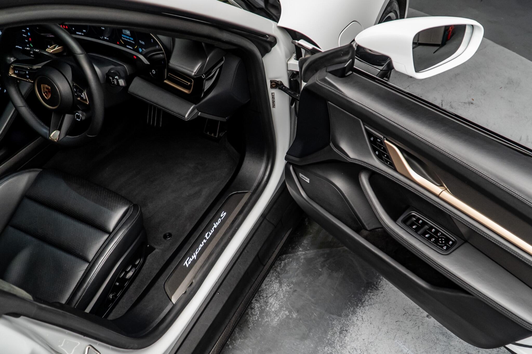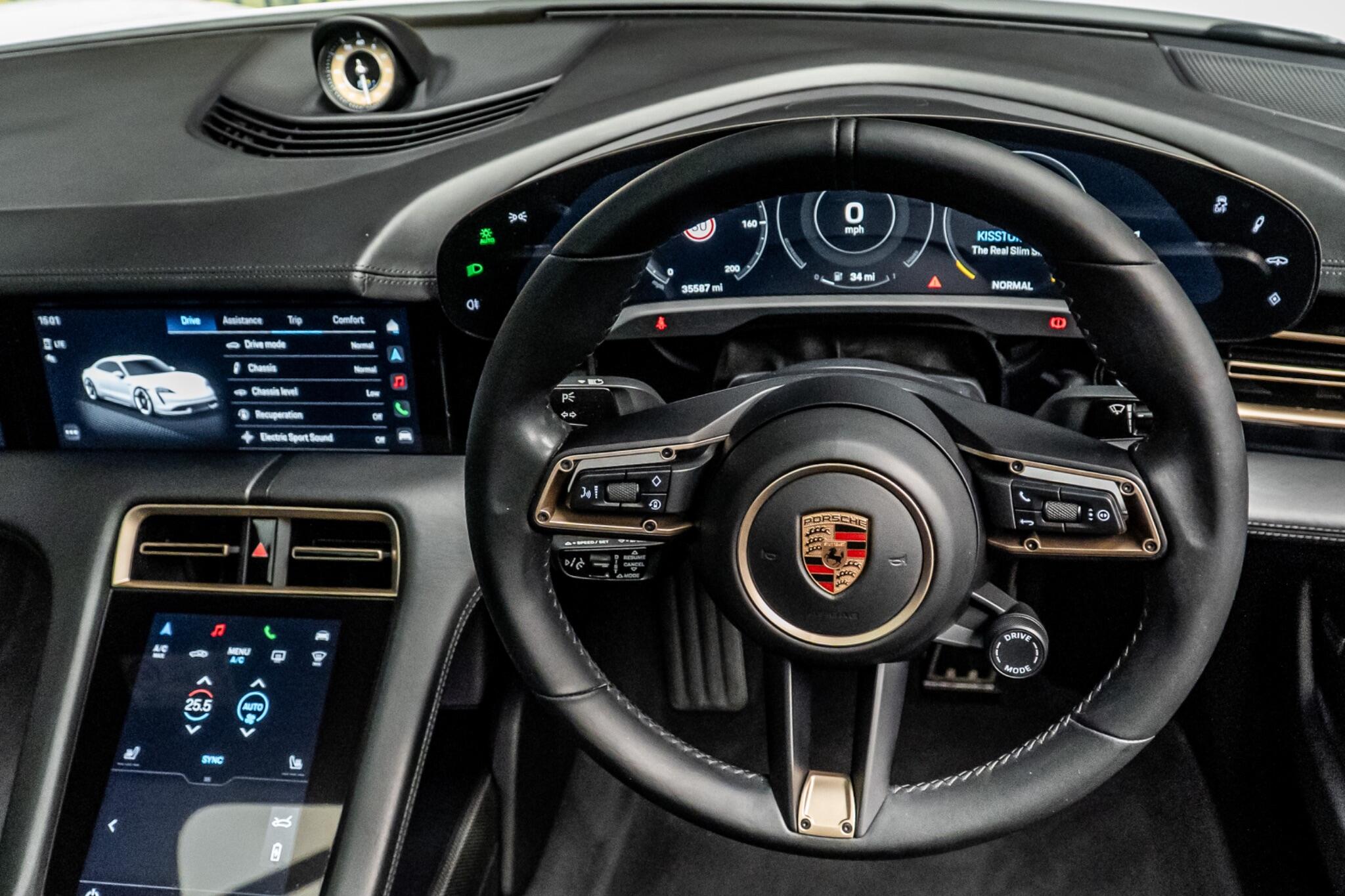 This 2020 Porsche Taycan Performance Plus Turbo S is a remarkable example of electric performance. As a four wheel drive model, it offers exceptional grip and handling. With a substantial 93 kWh battery, this Taycan boasts a maximum range of 258 miles when new, providing ample capability for both daily commutes and longer journeys. Charging is convenient, with a full charge at home taking approximately 13 hours and 30 minutes using a 7kW charger, while rapid public charging can replenish the battery from empty to 80% in as little as 25 minutes. The Taycan Performance Plus Turbo S is equipped with advanced LED Matrix Headlights featuring Porsche Dynamic Light System Plus, ensuring optimal visibility in all conditions. Inside, you'll find an Advanced 2 Zone Climate Control system for personalised comfort, and automatic headlight activation with welcome home lighting adds a touch of sophistication. The 18 Way Adaptive Sports Seats in the front, complete with a memory package, offer superb support and adjustability. Furthermore, Porsche Connect with Apple CarPlay seamlessly integrates your digital life. This Taycan truly excels with its breathtaking acceleration, achieving 0 to 62 miles per hour in a mere 2.8 seconds, a performance that places it significantly ahead of many comparable vehicles.